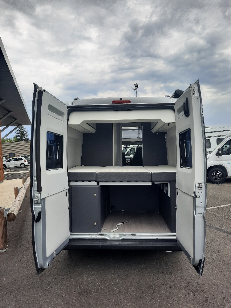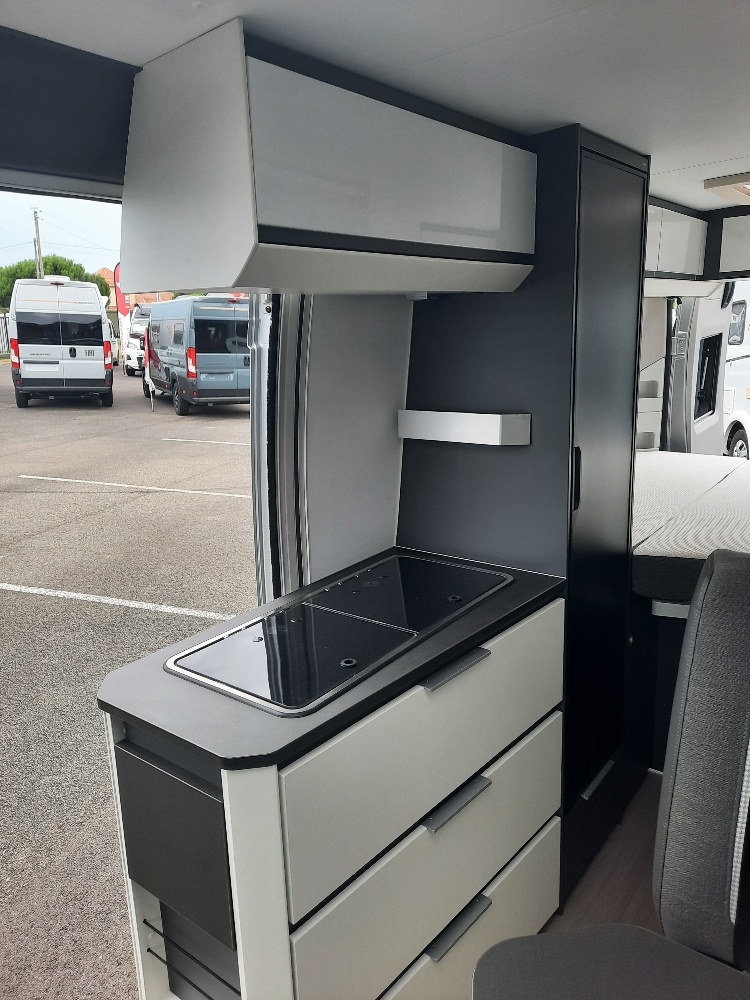 Esta camper ofrece un diseño interior moderno y funcional, con acabados de calidad y una distribución inteligente que aprovecha al máximo el espacio. Ideal tanto para escapadas cortas como para viajes largos en carretera.