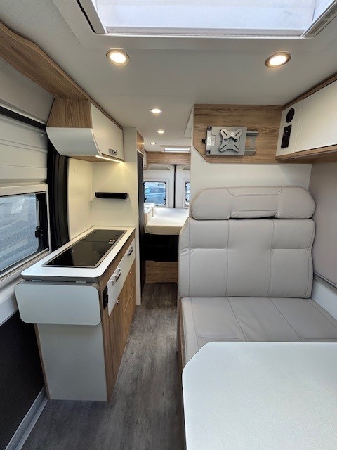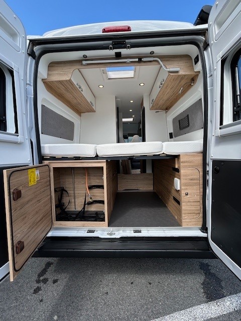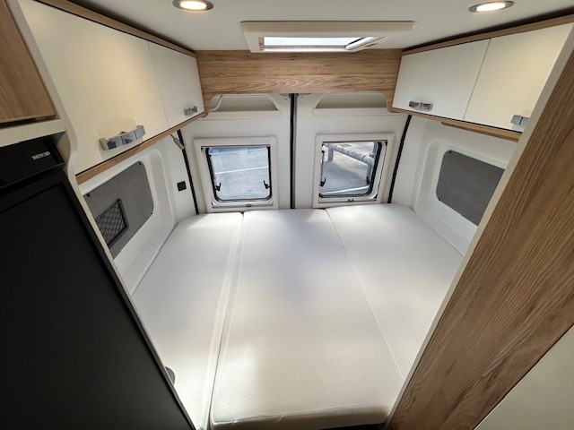 Dispone de 4 plazas homologadas para viajar y 4 plazas para dormir, gracias a su distribución inteligente que incluye una cama transversal trasera cómoda y accesible. El espacio está optimizado para ofrecer funcionalidad sin perder sensación de amplitud.